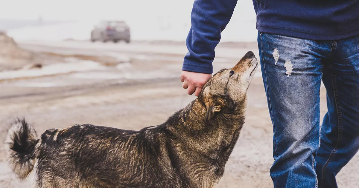 Wyciągnąłem ręce i powoli ruszyłem w jego stronę. Pies nie drgnął, jedynie spojrzał na mnie z wyczerpanym i nieśmiałym spojrzeniem. Przycisnął się całym ciałem, jakby trzymał mnie przez cały dzień, a dopiero pod moim uklęknięciem, gdy chciałem zbadać jego stan, delikatnie odpuścił.