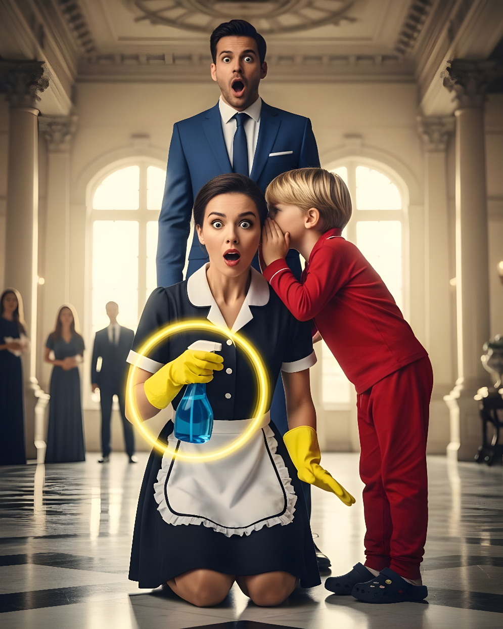 Na ekskluzywnym przyjęciu bogacz niespodziewanie złożył obietnicę, która zaskoczyła wszystkich zgromadzonych. Oświadczył, że ten, kto doprowadzi do tego, iż jego syn zacznie mówić, poślubi go. Nikt nie wierzył w te słowa, aż do momentu, gdy skromna sprzątaczka delikatnie pogłaskała głowę chłopca, a długoletnia cisza została przełamana.