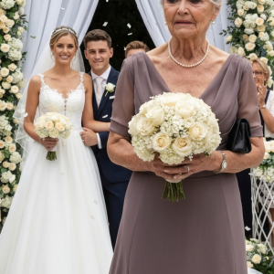 Kiedy w końcu dotarliśmy na miejsce, nie spodziewałam się takiego widoku. Clara stała na schodach, promienna, trzymając bukiet kremowych róż, ubrana w prostą białą suknię ślubną. Fotografowie tłoczyli się, pstrykając zdjęcia, gdy pozowała z promiennym uśmiechem. Milo, jej chłopak od zaledwie roku, wyglądał na skrępowanego obok niej w garniturze.