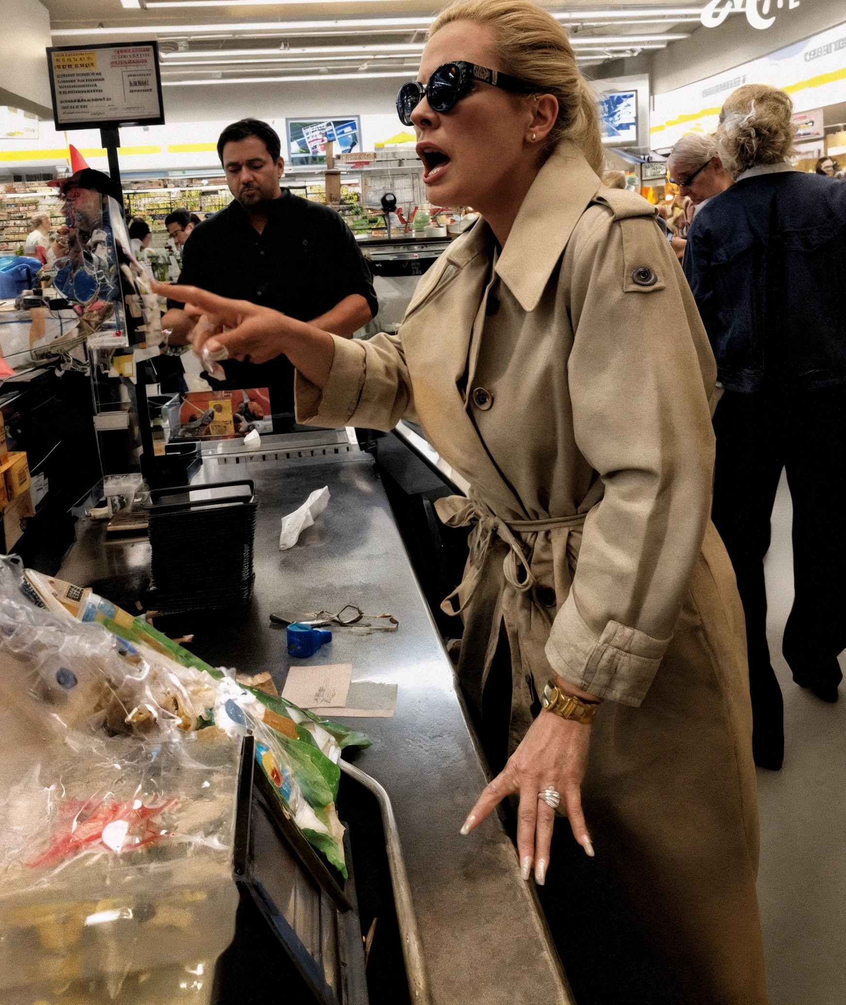 I watched her toss an artisan loaf onto my conveyor belt as if it offended her just by existing.
