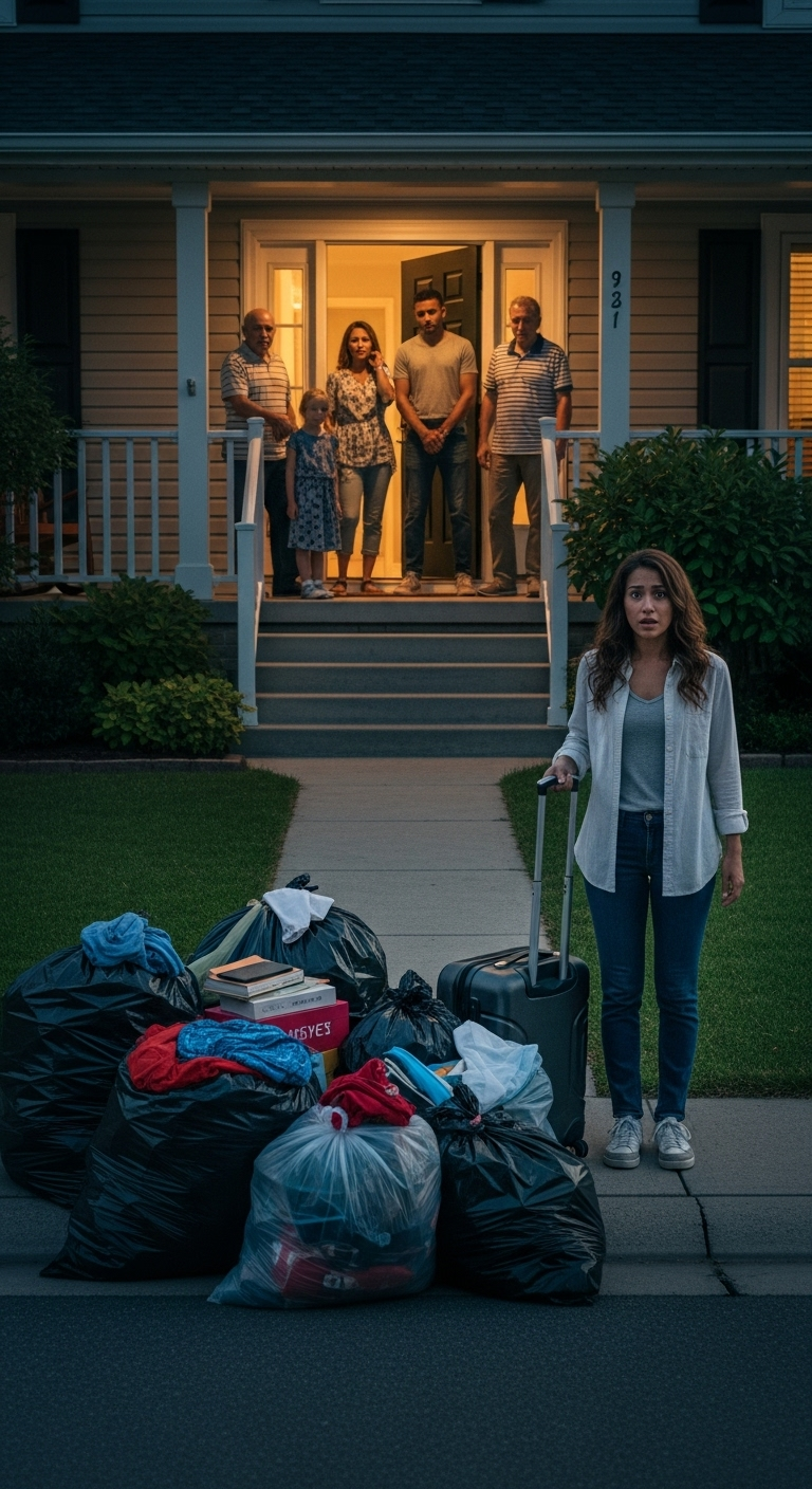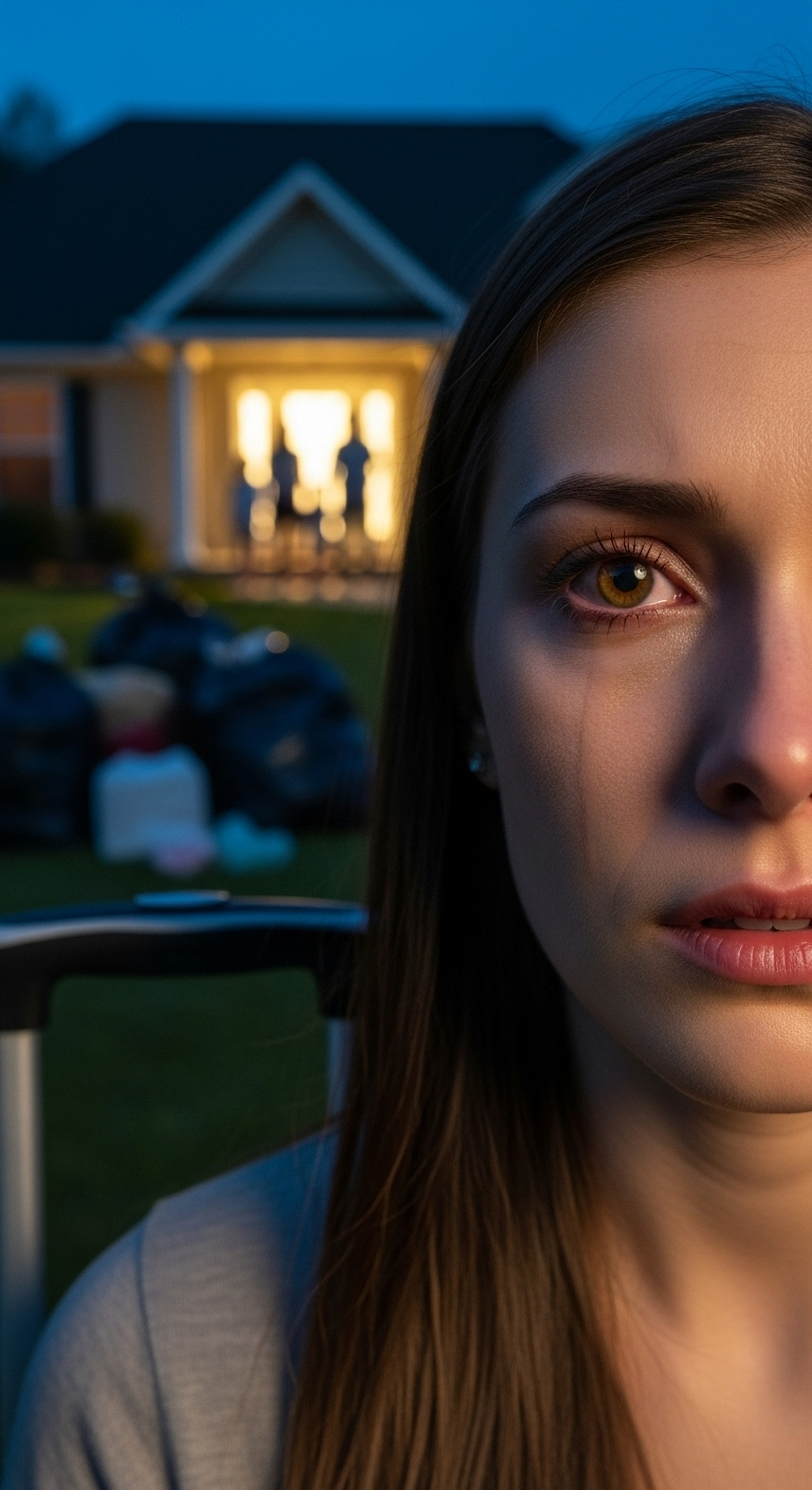 Kiedy mój samolot wylądował, wzięłam taksówkę do domu. Gdy taksówka wjeżdżała na podjazd, wiedziałam, że coś jest nie tak. Moje rzeczy (odzież, książki, osobiste przedmioty) były spakowane w czarne worki na śmieci i porozrzucane po trawie.