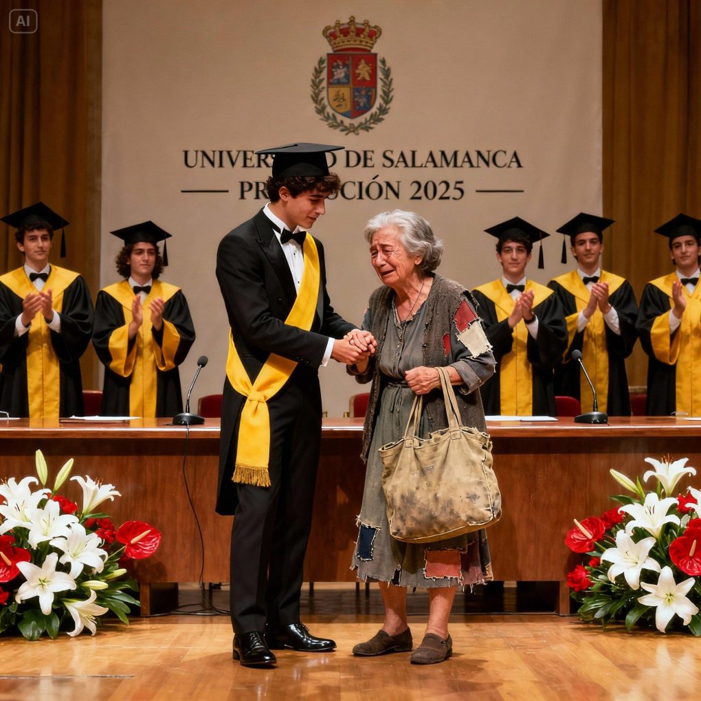 Audytorium pogrążyło się w absolutnej ciszy, a wszyscy akademicy, studenci i uczestnicy skupili uwagę na zmęczonym, ale dumnym murarzu, który wychował doktora, nie prosząc o nic w zamian.
