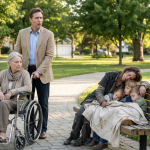 Matthew zaśmiał się krótko, starając się odwrócić rozmowę, ale zanim zdążył, skręcili w zakręt, a świat się zmienił. Na drewnianej ławce pod szerokim klonem spała kobieta, lekko zrolowana na boku, jej postawa ochronna, twarz naznaczona zmęczeniem. Obok niej stał wózek dla trojaczków, a w środku spały trzy niemowlęta, oddane w bezproblemowym zaufaniu, jak tylko niemowlęta mogą. Matthew zatrzymał się tak nagle, że jego matka prawie potknęła się. Uderzenie rozpoznania nie pozostawiło mu żadnej litości. Kobieta to była Paige.