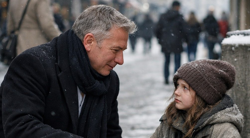 Na ruchliwej ulicy, pośród pośpiechu i obojętnych spojrzeń, drobna dziewczynka zebrała w sobie odwagę, by zatrzymać mężczyznę, który wyglądał, jakby należał do zupełnie innego świata. W ramionach trzymała młodszego brata owiniętego w znoszony koc. Malec drżał z chłodu i głodu, a ona sama ledwo stała prosto.