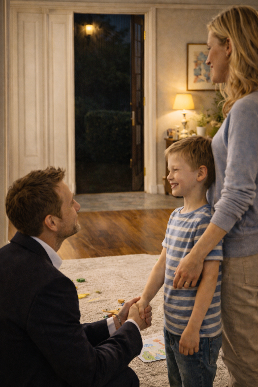 Michael kniete sich vor seinen Sohn, streckte vorsichtig die Hand aus, und Leon, der sonst sogar längere Blicke seines Vaters vermied, trat unerwartet einen Schritt nach vorn und berührte seine Hand.
