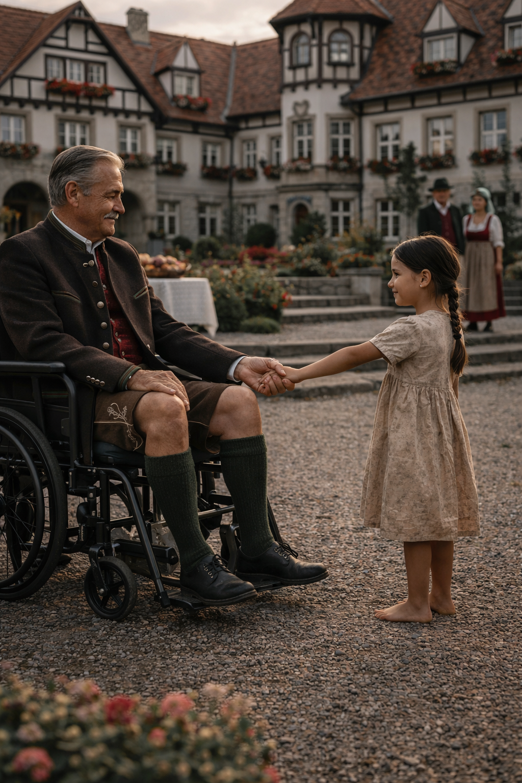 An diesem Tag kam die Wäscherin in den Hof, die seit vielen Jahren für das Haus arbeitete, und mit ihr ihre Enkelin Emma — ein kleines Mädchen in einem einfachen Kleid, barfuß, mit einem aufmerksamen Blick, in dem weder Angst noch die übliche Ehrfurcht vor Reichtum lagen. Während die Erwachsenen beschäftigt waren, stand sie etwas abseits und sah Friedrich so ruhig an, als stünde vor ihr nicht der einflussreichste Mann der Stadt, sondern einfach ein müder Mensch, den seit langer Zeit niemand mehr wirklich zu verstehen versucht hatte.