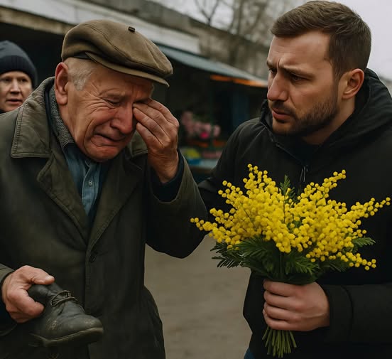 Sprzedawczyni spojrzała na pieniądze, uśmiechnęła się lekko i wyjęła z koszyka gałązkę mimozy prawie wyschłą — złamaną, wyblakłą.